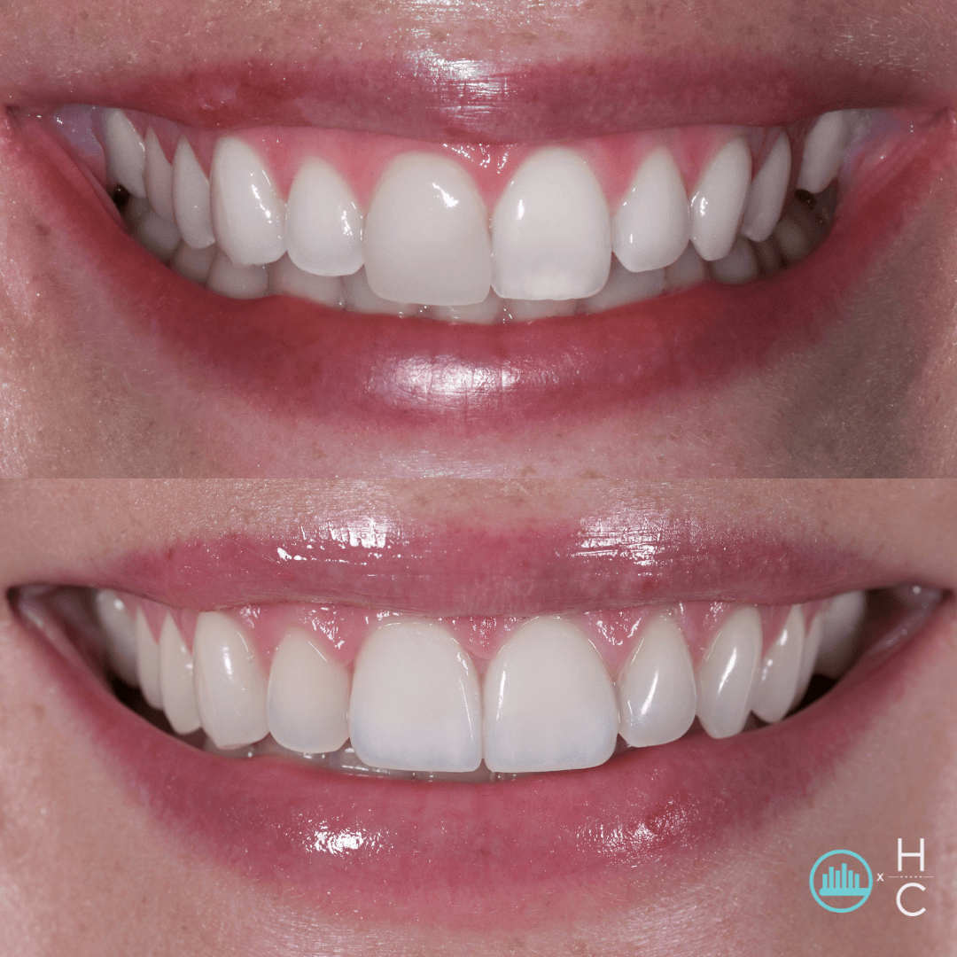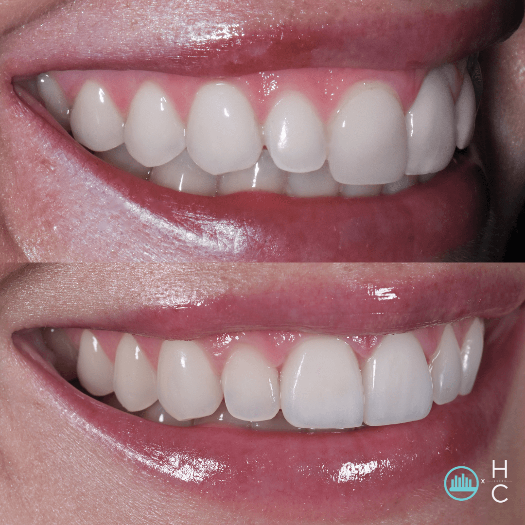Madison came to us unhappy with the look of her veneer on #8 and a chipped tooth on #9. She wanted a refreshed smile without going overboard, so we kept it simple.